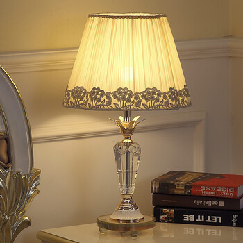 摩菱床头灯卧室温馨现代花边布艺奢华k9水晶黄色台灯led时尚个性创意礼品礼物浪漫暖光浅黄色按纽开关 图片价格品牌报价 京东