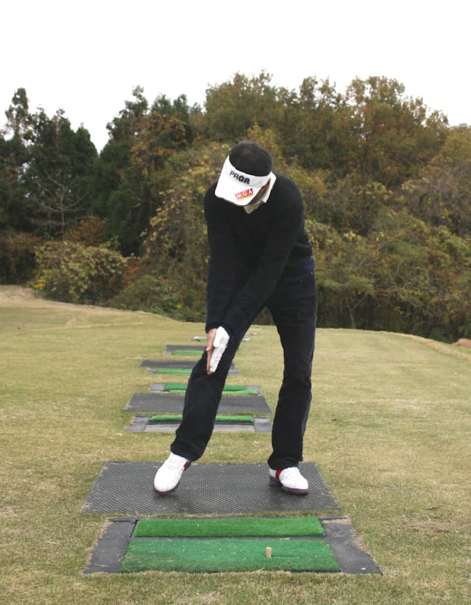バックスイングで右膝が流れないよう我慢する ゴルフマニア手帳